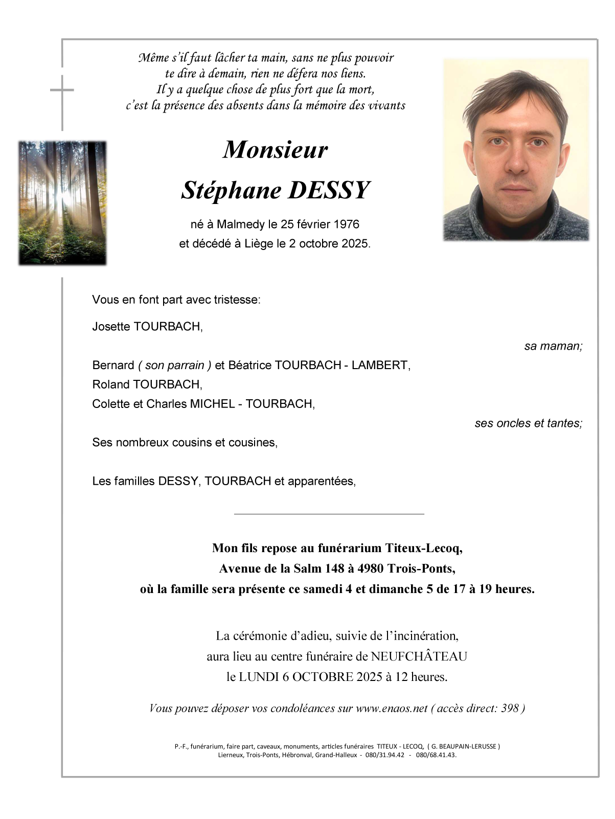 Décédé à Liège (4000, Belgique) le jeudi 2 octobre 2025 à l'âge de 49 ans