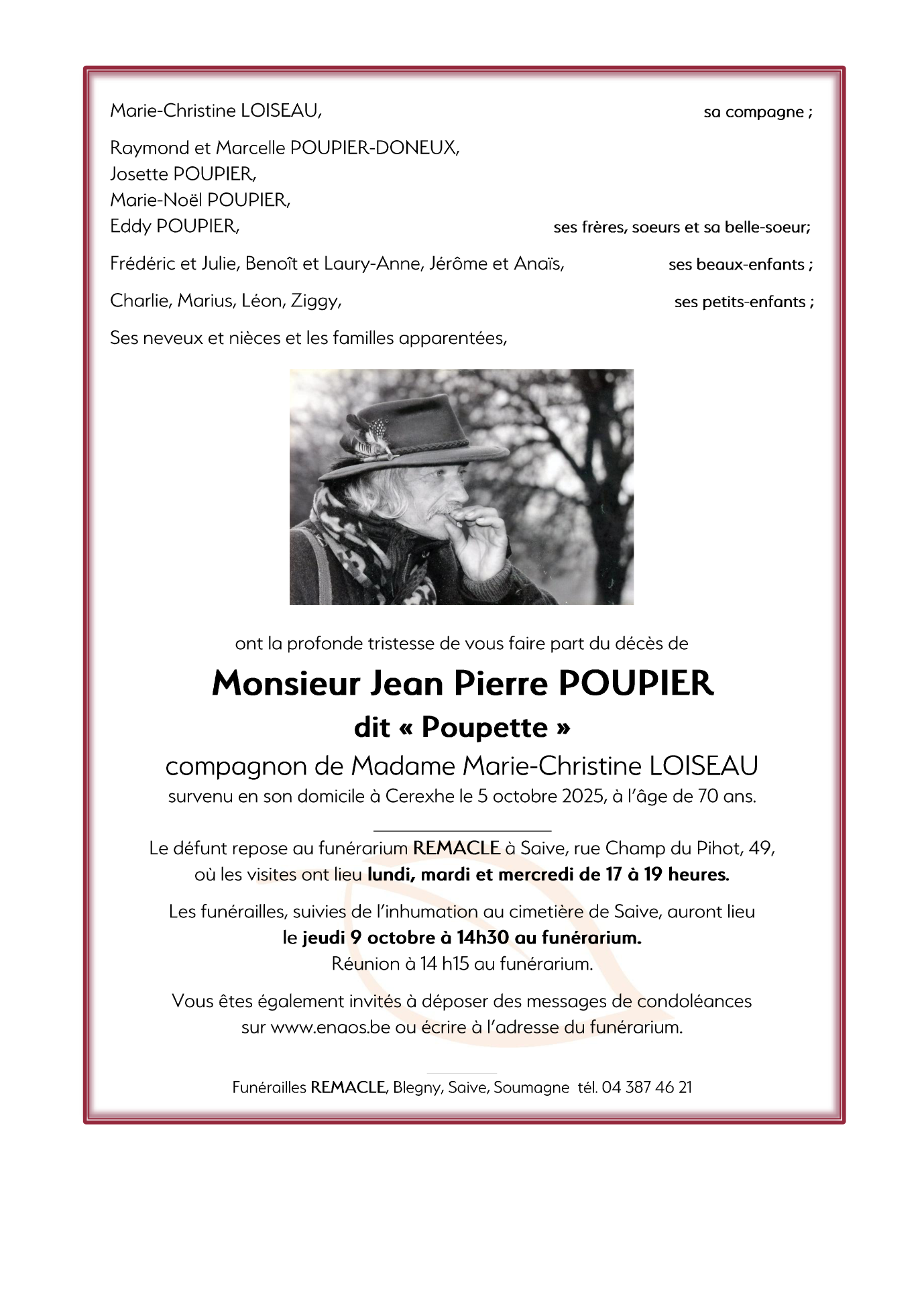 Décédé à Cerexhe-Heuseux (4632, Belgique) le dimanche 5 octobre 2025 à l'âge de 70 ans