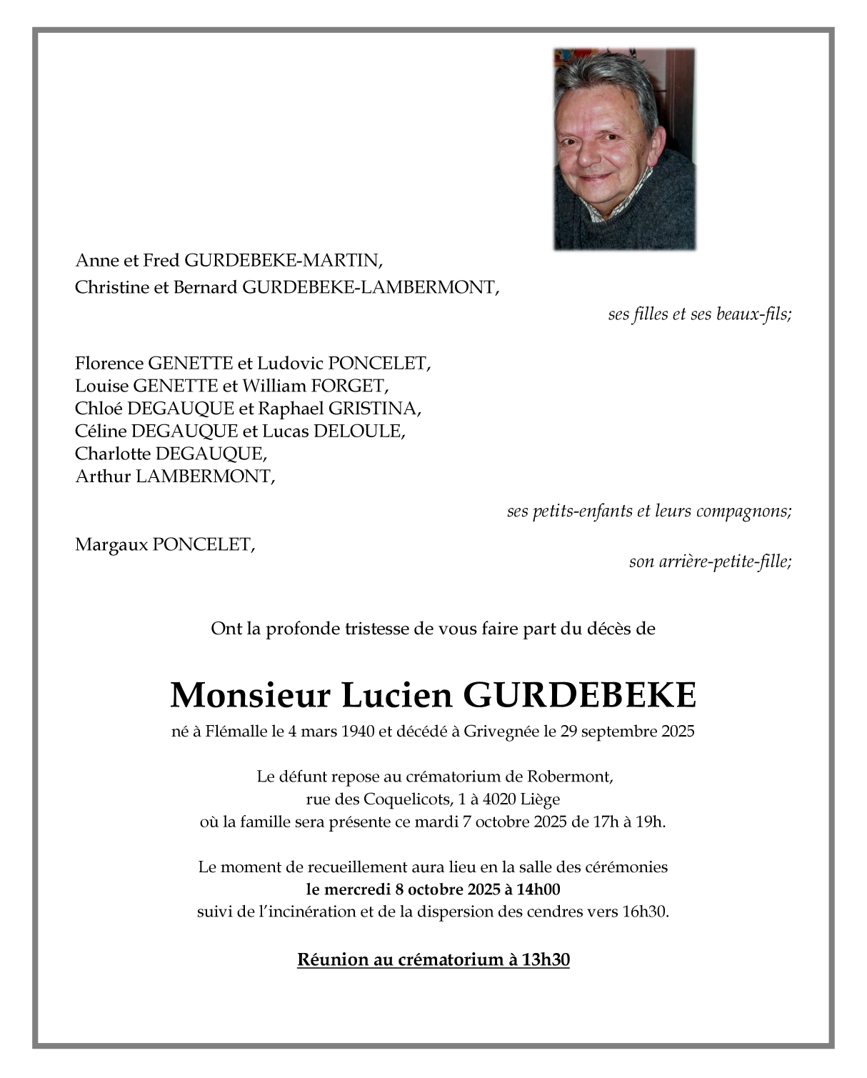 Décédé à Grivegnée (4030, Belgique) le lundi 29 septembre 2025 à l'âge de 85 ans