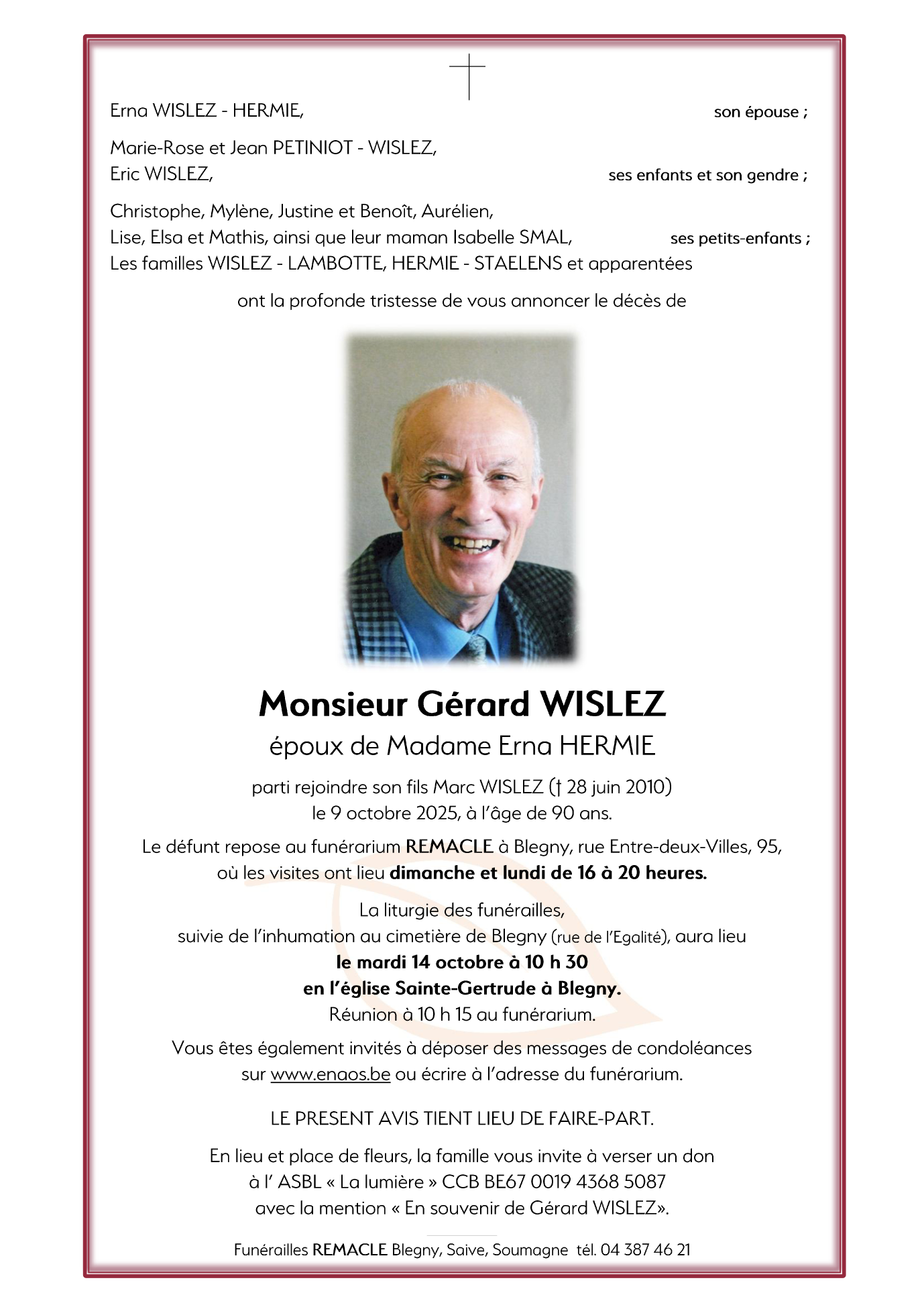 Décédé à Blegny (4670, Belgique) le jeudi 9 octobre 2025 à l'âge de 90 ans