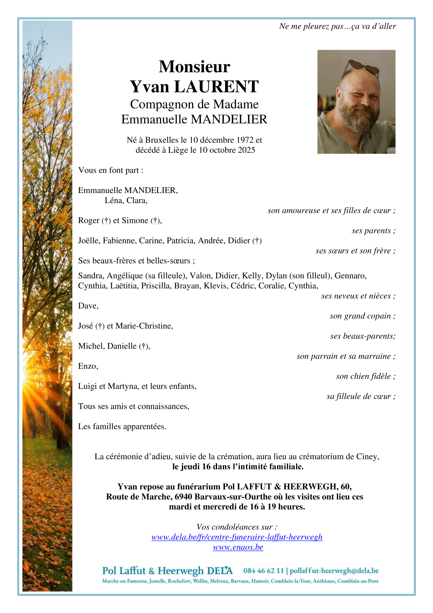 Died in Liège (4000, Belgium) on 10 October 2025 at the age of 52 years
