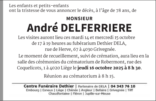 Décédé à Liège (4020, Belgique) le jeudi 9 octobre 2025 à l'âge de 78 ans