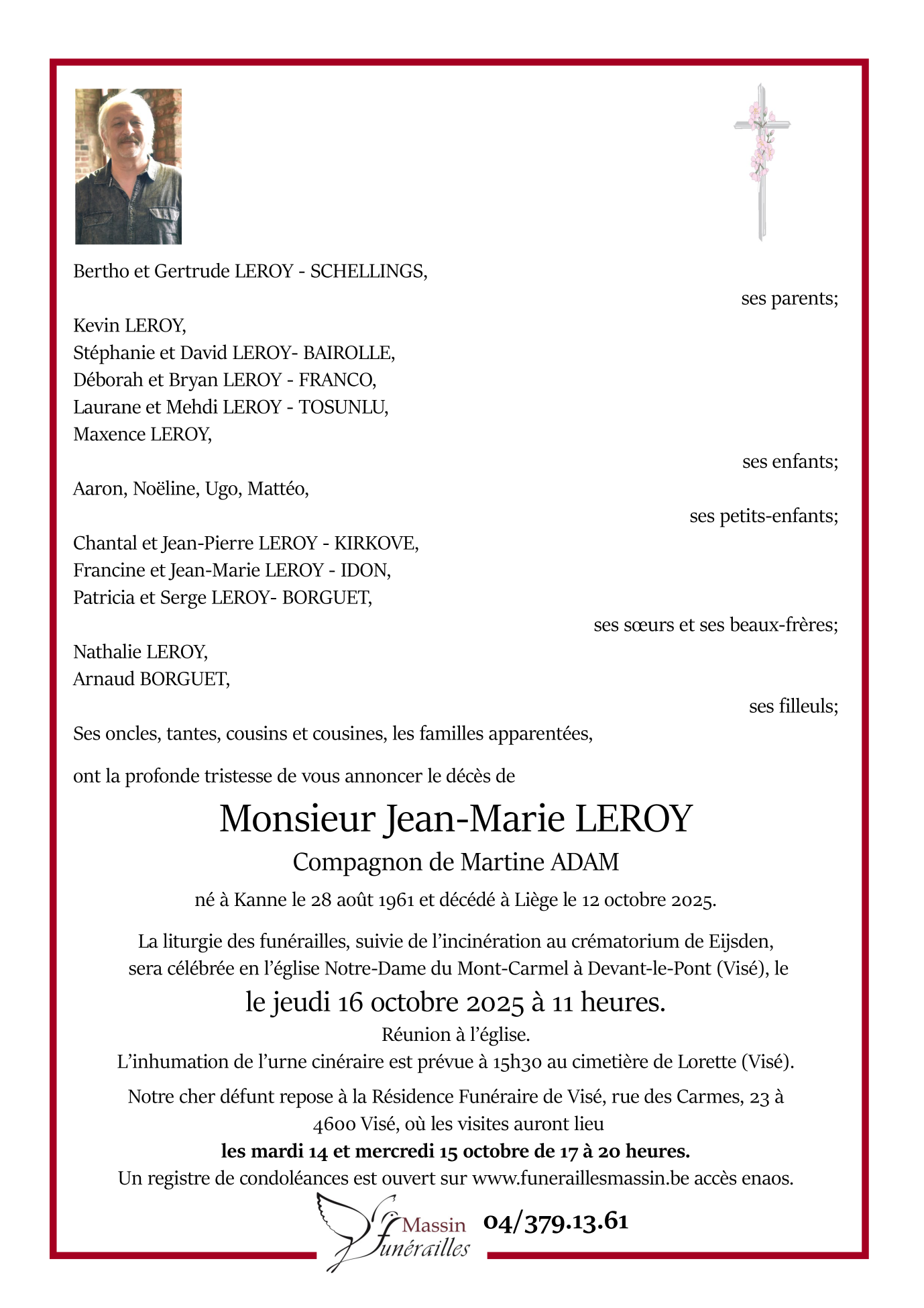 Décédé à Liège (4000, Belgique) le dimanche 12 octobre 2025 à l'âge de 64 ans
