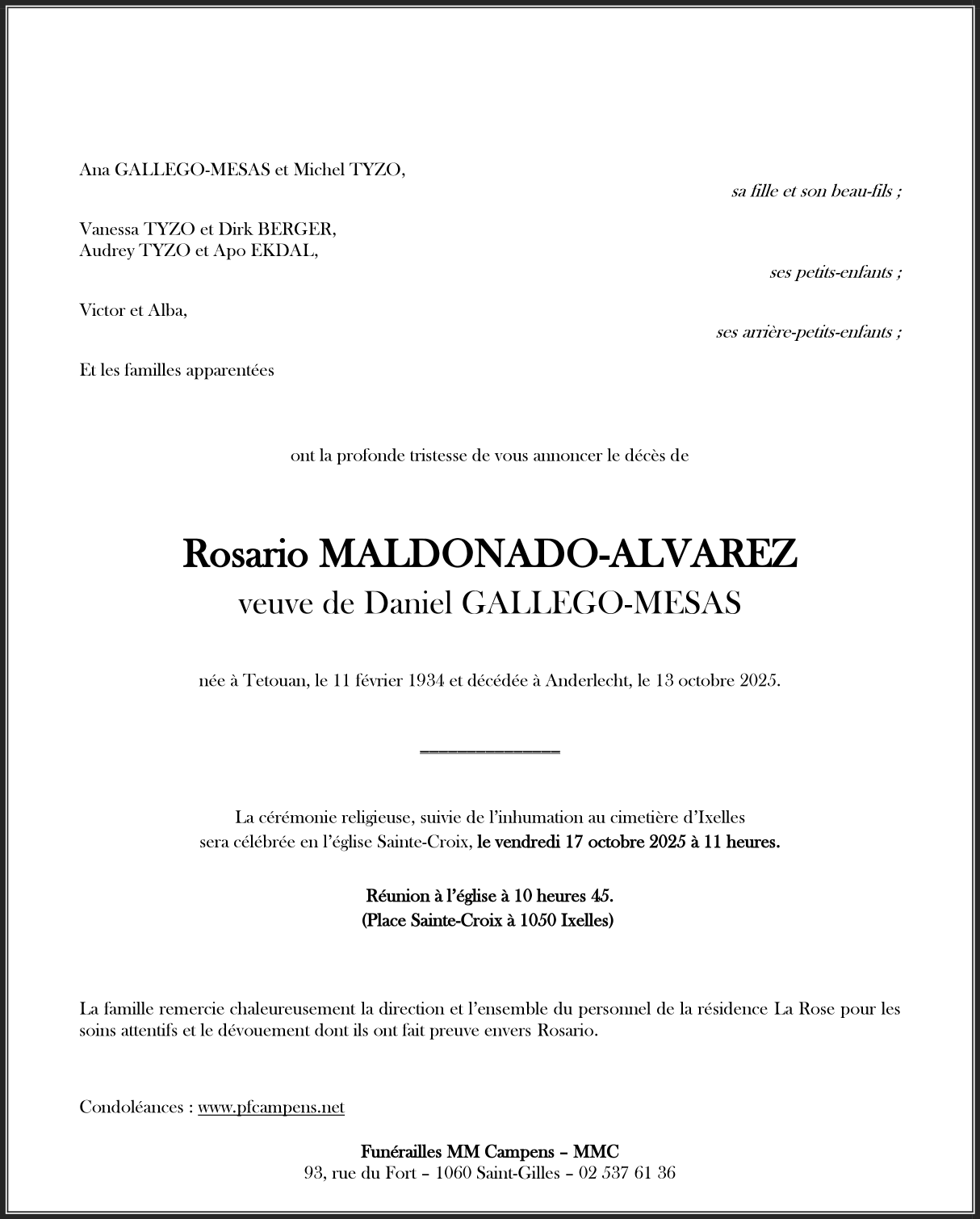 Veuve de Monsieur Daniel GALLEGO-MESAS