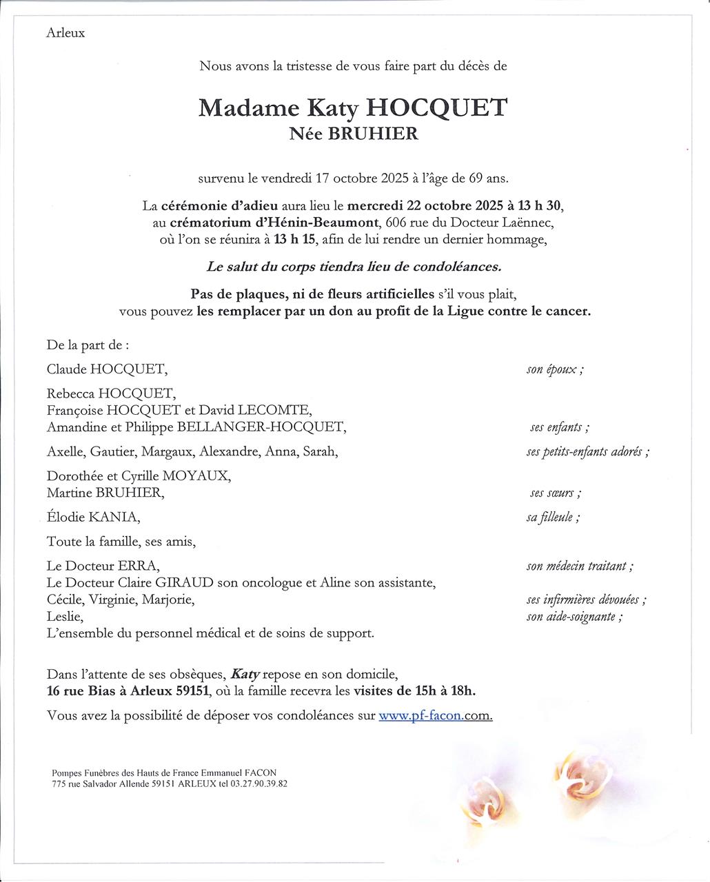 Madame Katy HOCQUET née BRUHIER