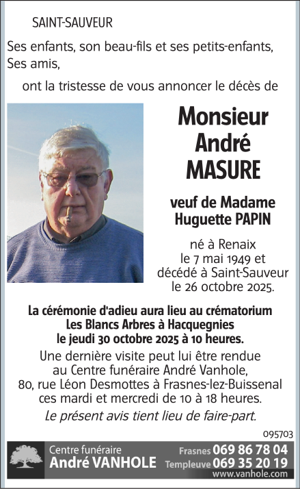 Décédé à Saint-Sauveur (7912, Belgique) le dimanche 26 octobre 2025 à l'âge de 76 ans
