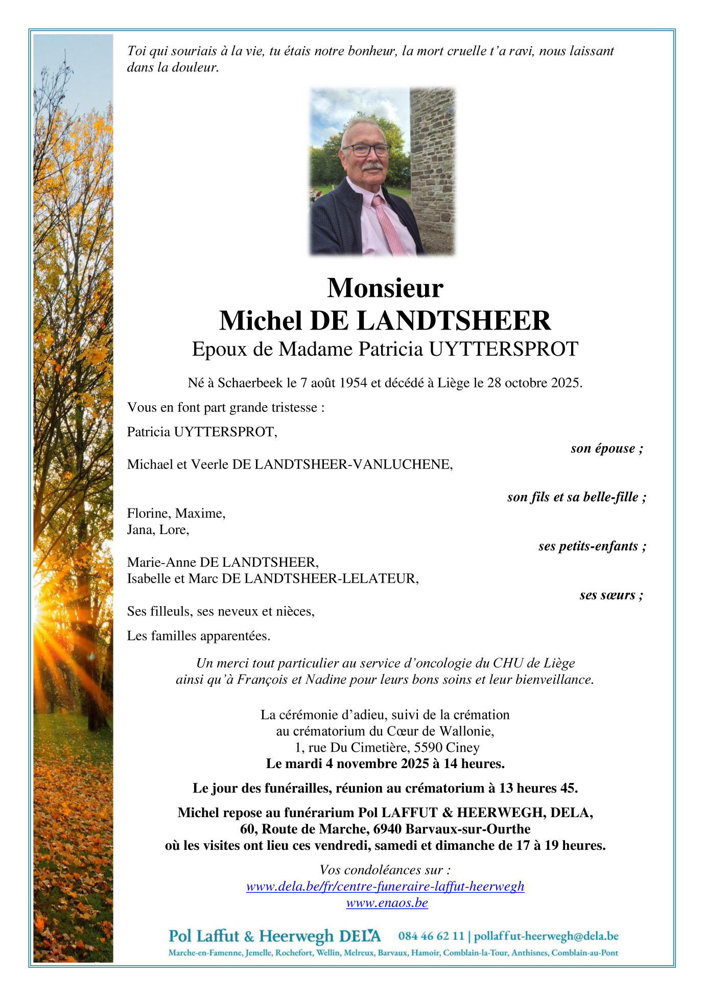 Décédé à Liège (4000, Belgique) le mardi 28 octobre 2025 à l'âge de 71 ans