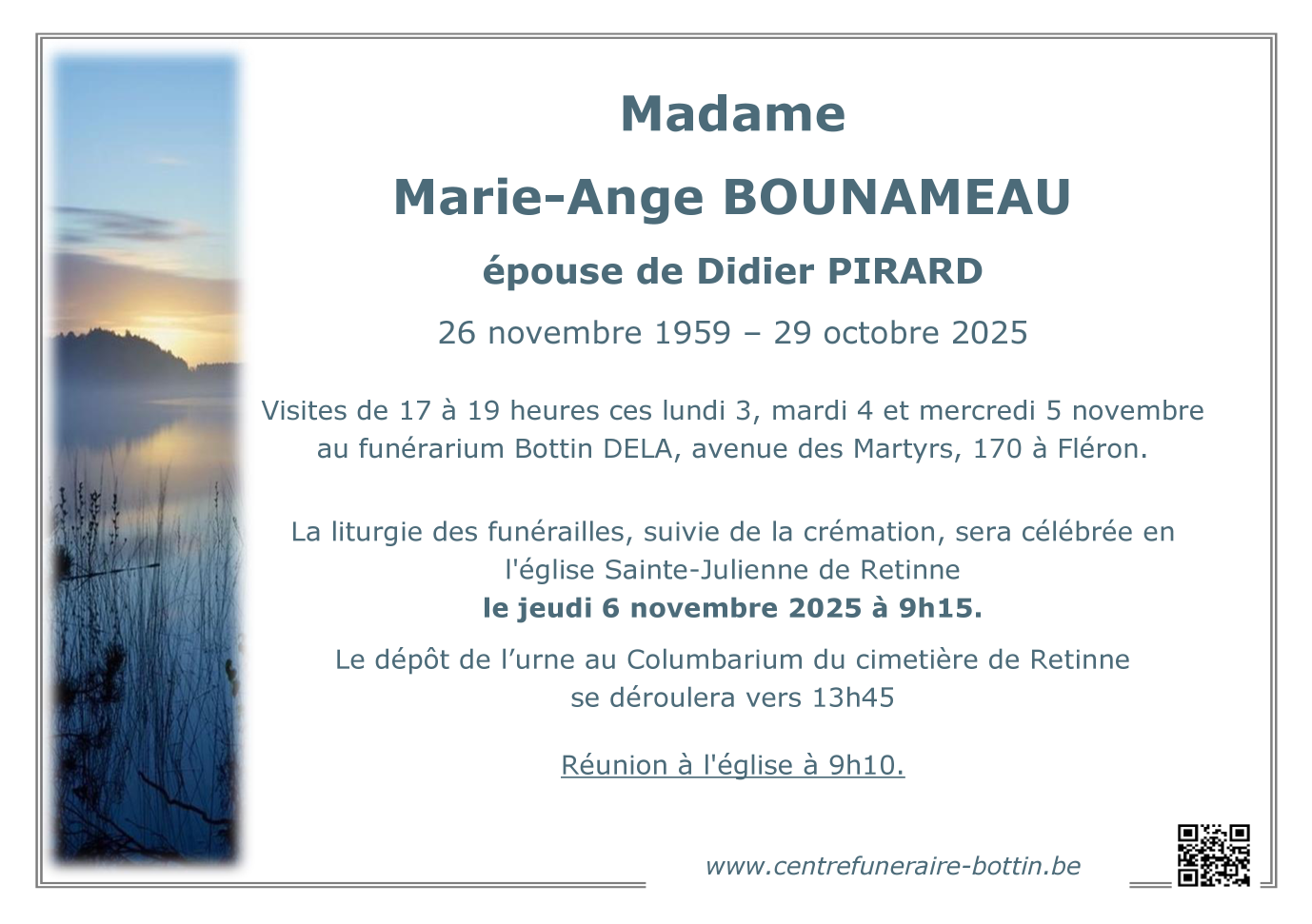 Décédée à Chênée (4032, Belgique) le mercredi 29 octobre 2025 à l'âge de 65 ans