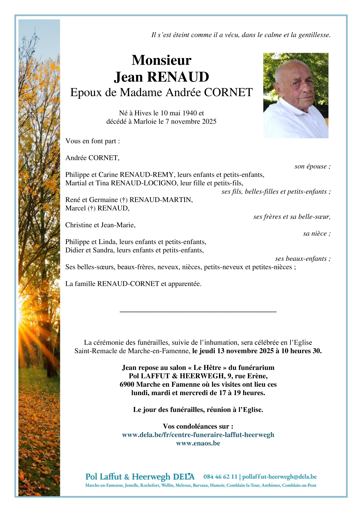Décédé à Marloie (6900, Belgique) le vendredi 7 novembre 2025 à l'âge de 85 ans