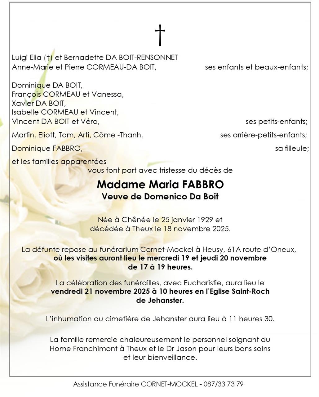 Décédée à Theux (4910, Belgique) le mardi 18 novembre 2025 à l'âge de 96 ans