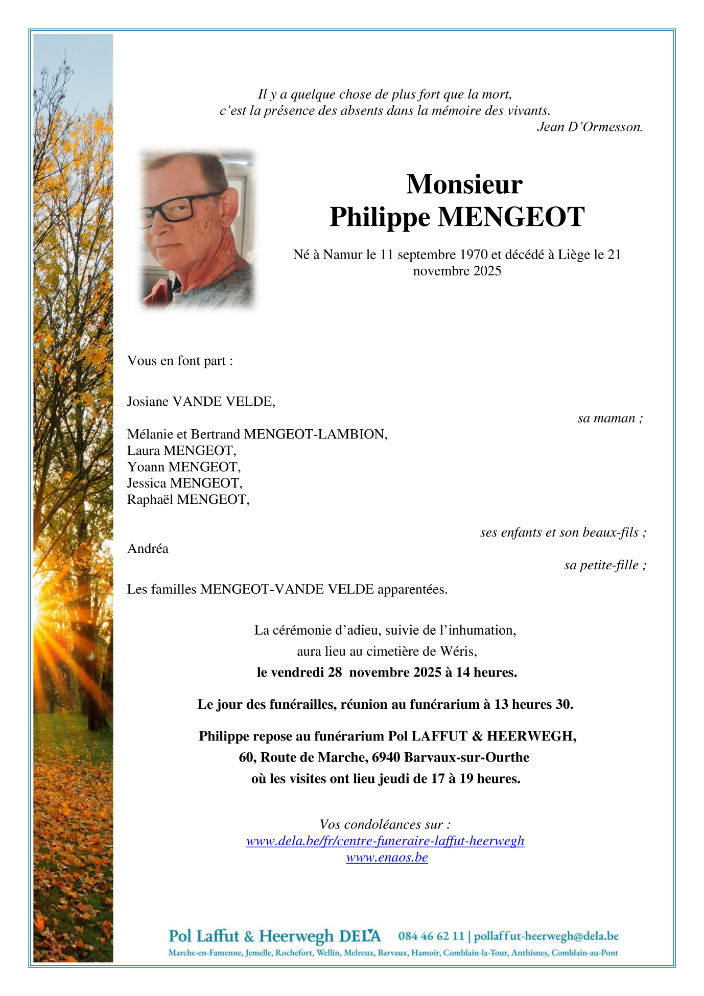 Décédé à Liège (4000, Belgique) le vendredi 21 novembre 2025 à l'âge de 55 ans