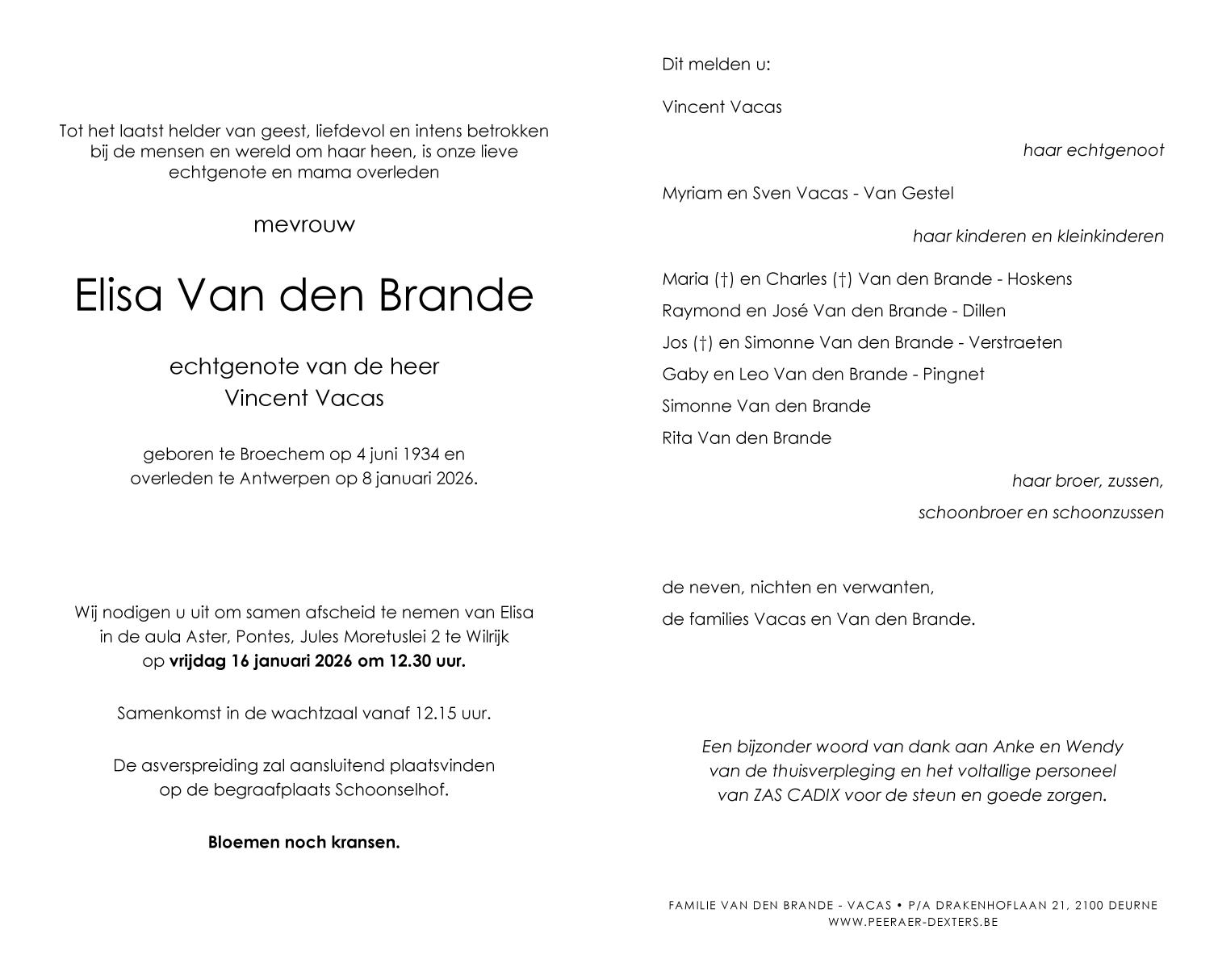 Died in Antwerpen (2030, Belgium) on 08 January 2026 at the age of 91 years