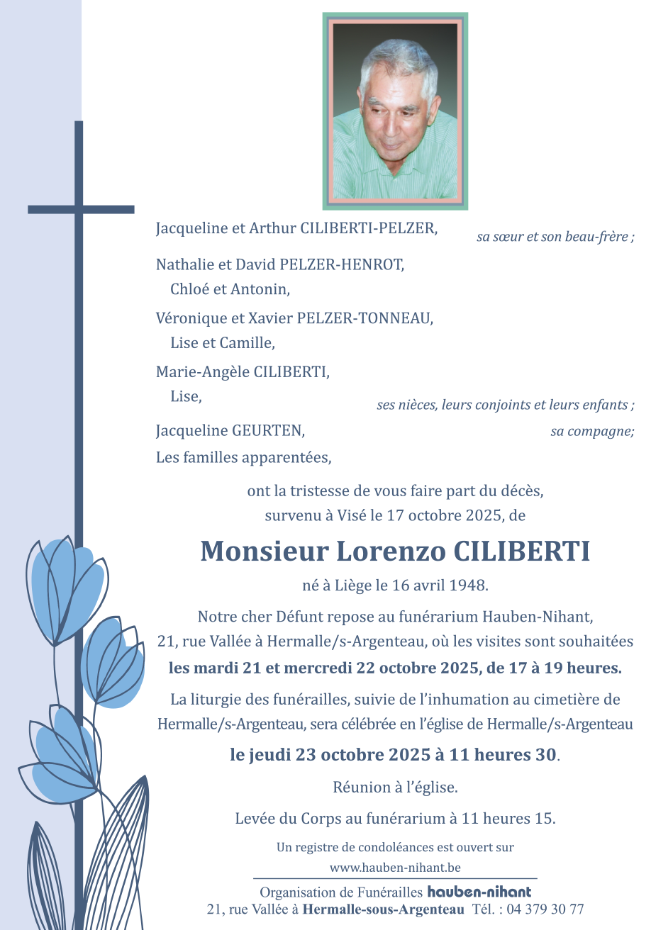 Décédé à Visé (4600, Belgique) le vendredi 17 octobre 2025 à l'âge de 77 ans