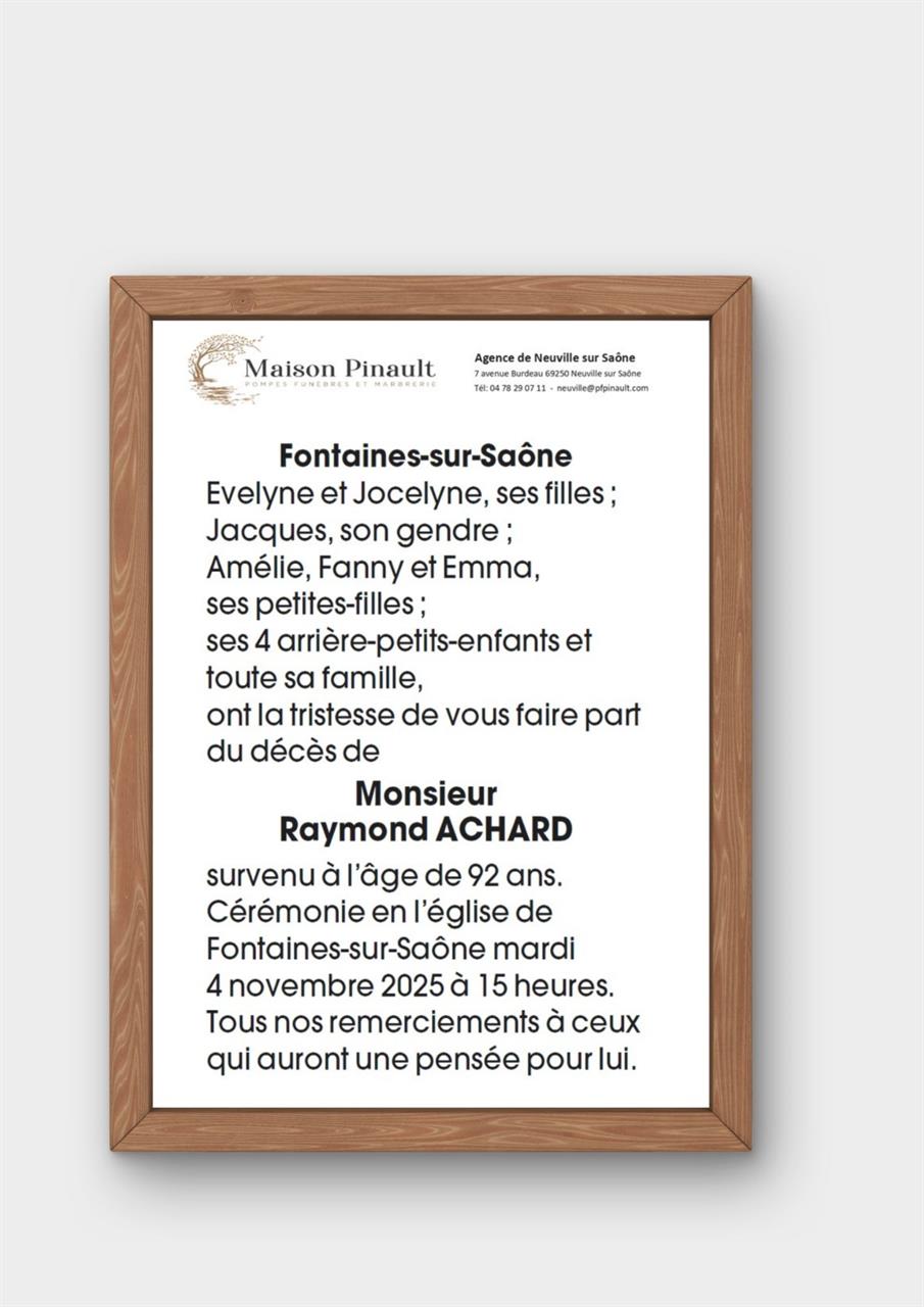 Décédé à Chasselay (69380, France) le lundi 27 octobre 2025 à l'âge de 92 ans