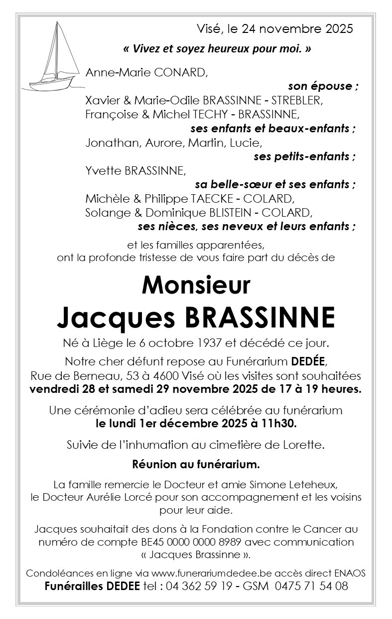 Overleden te Visé (4600, België) op maandag 24 november 2025 op 88-jarige leeftijd