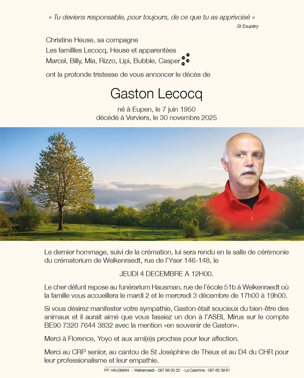 Fallecido en Verviers (4800, Bélgica) el domingo, 30 de noviembre de 2025 a la edad de 75 años