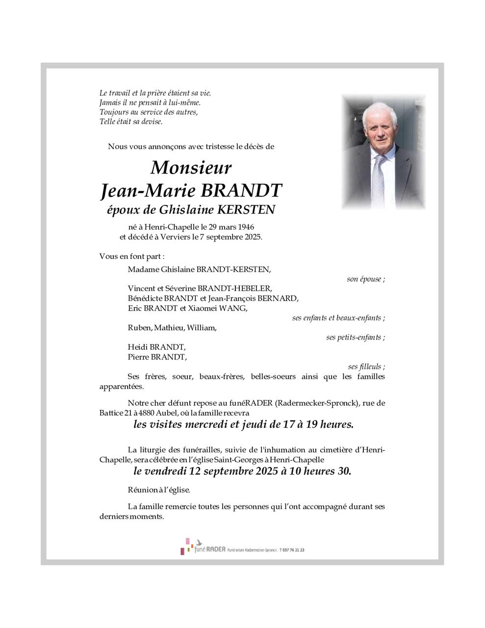 Décédé à Verviers (4800, Belgique) le dimanche 7 septembre 2025 à l'âge de 79 ans