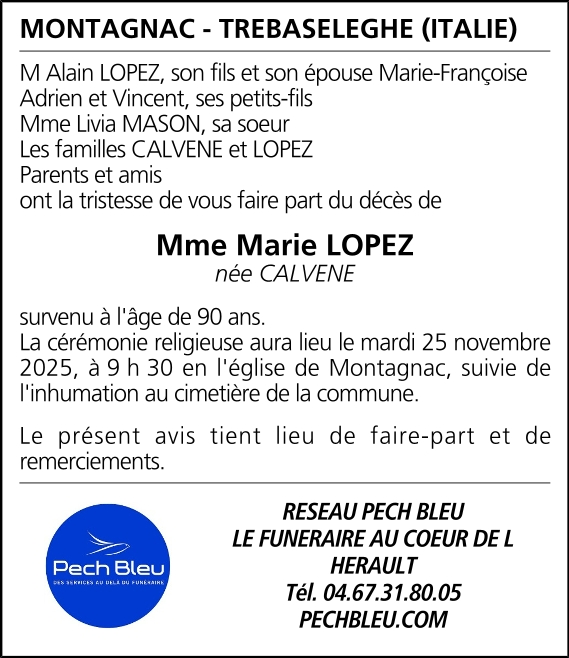 Décédée à Montpellier (34000, France) le jeudi 20 novembre 2025 à l'âge de 90 ans