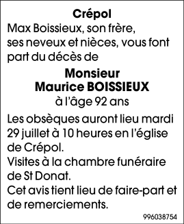 Décédé à Romans-sur-Isère (26100, France) le vendredi 25 juillet 2025 à l'âge de 92 ans