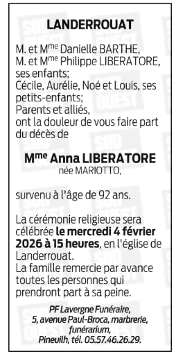 Died in Duras (47120, France) on 30 January 2026 at the age of 92 years
