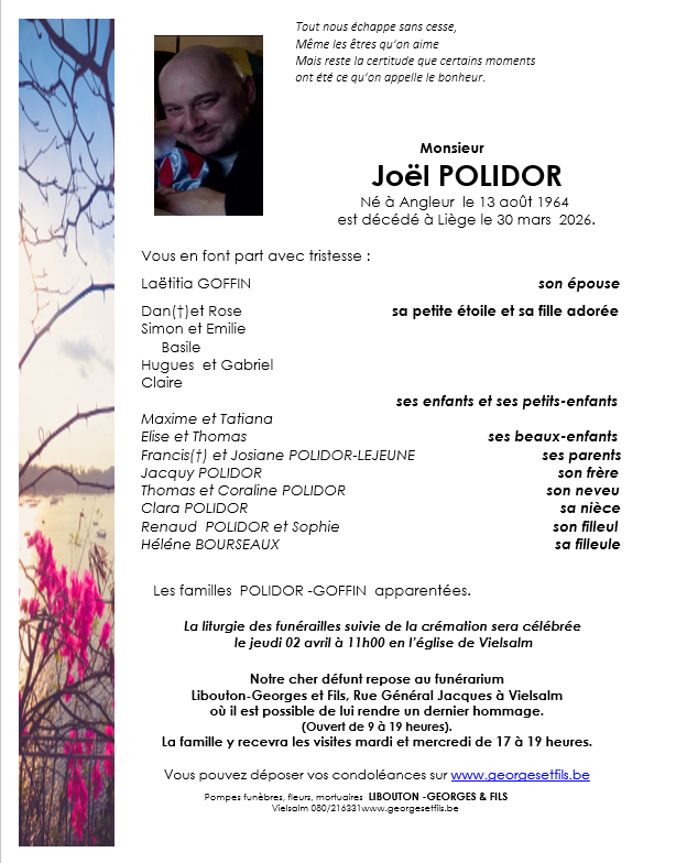 Décédé à Liège (4000, Belgique) le lundi 30 mars 2026 à l'âge de 61 ans