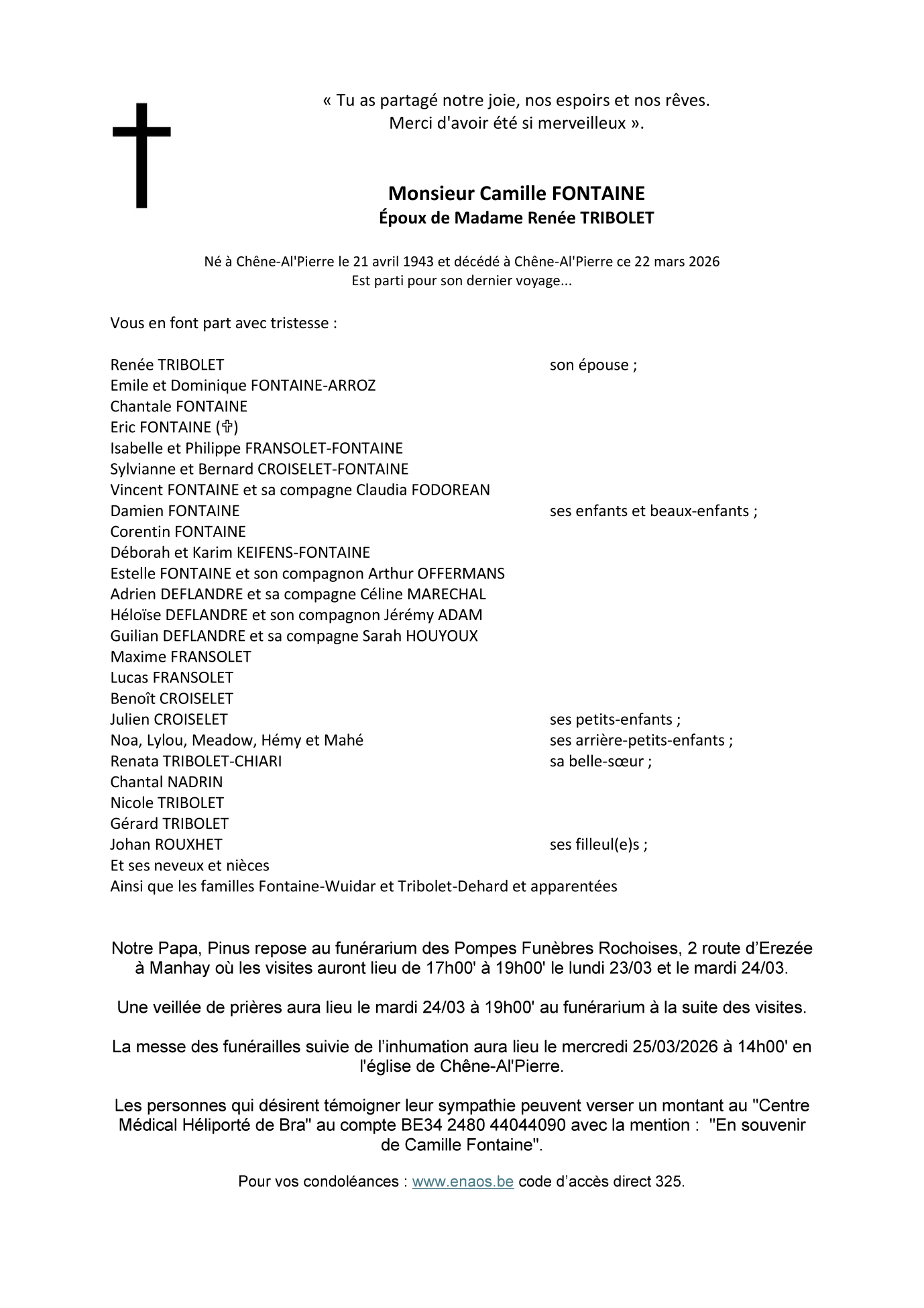 Overleden te Chêne-al-Pierre (6960, België) op zondag 22 maart 2026 op 82-jarige leeftijd