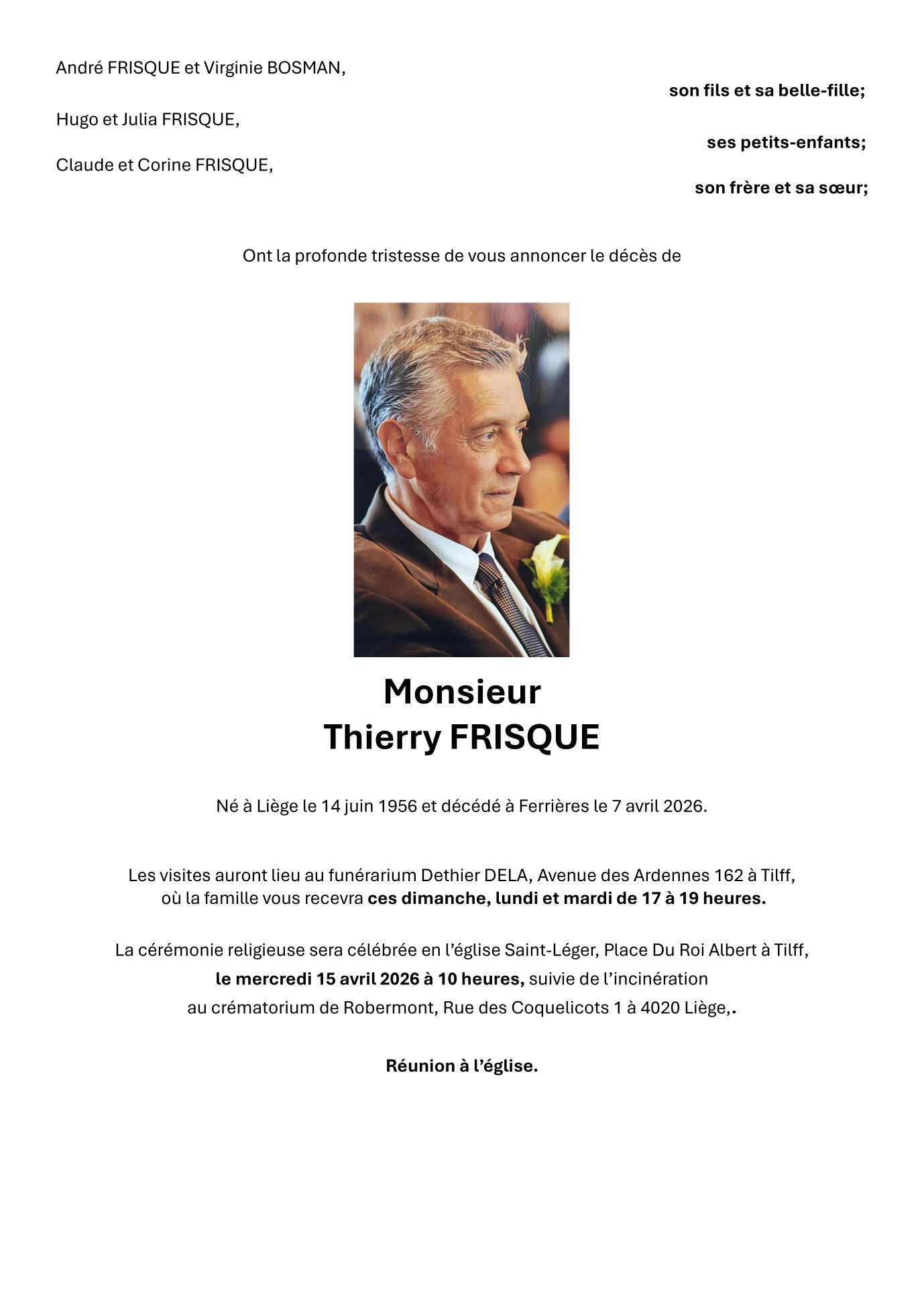 Overleden te Ferrières (4190, België) op dinsdag 7 april 2026 op 69-jarige leeftijd