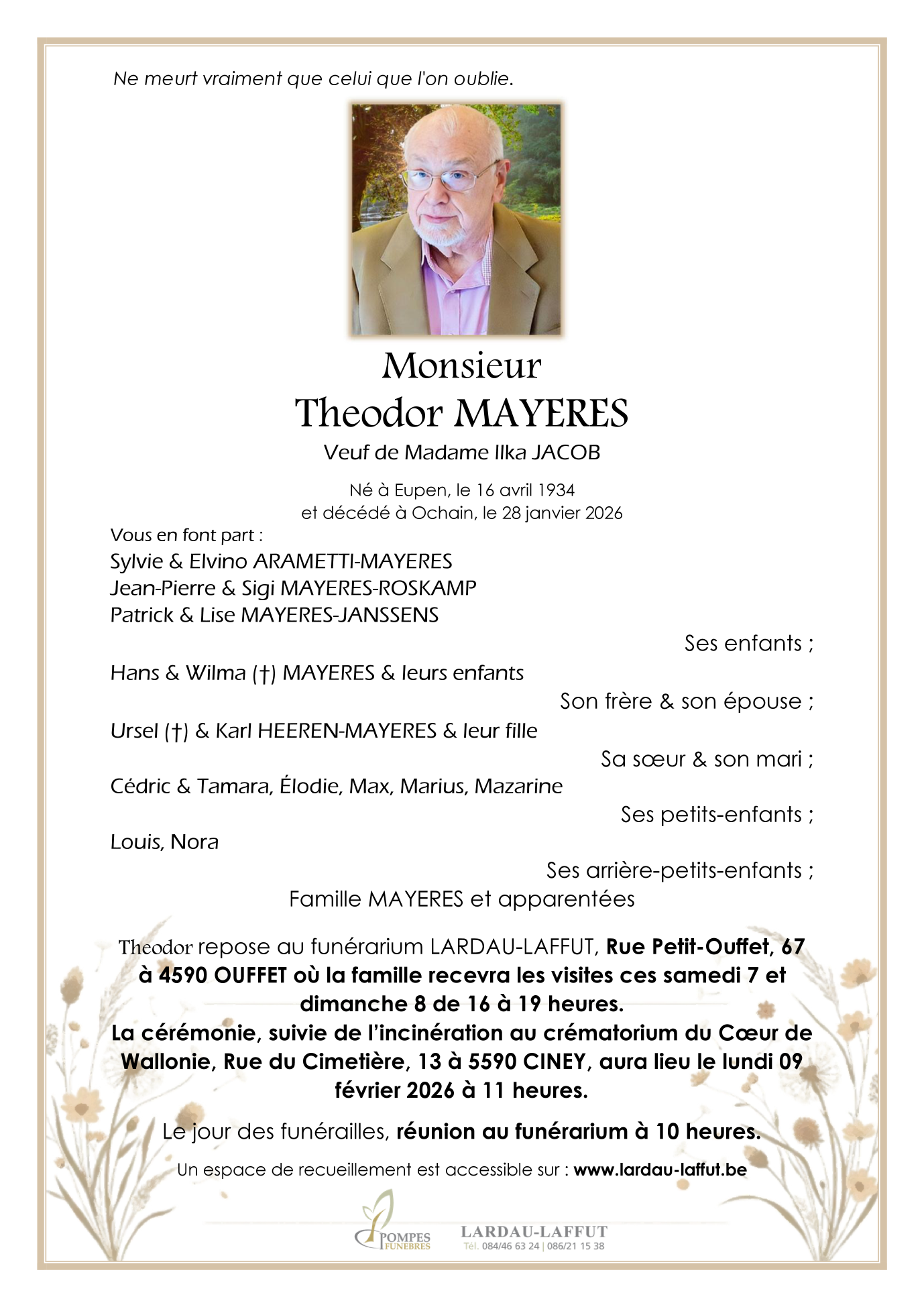 Died in Ochain (4560, Belgium) on 28 January 2026 at the age of 91 years
