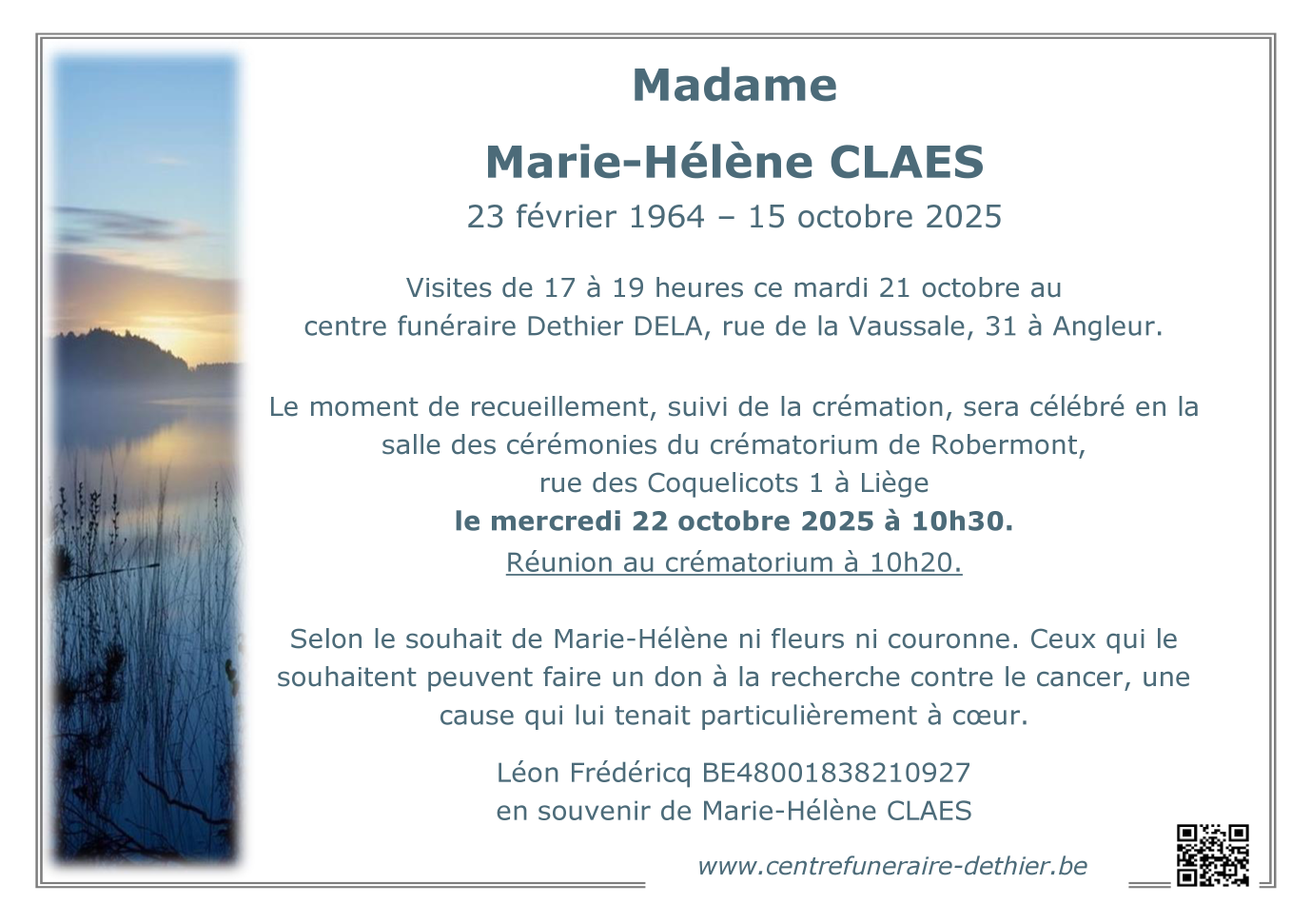 Overleden te Liège (4000, België) op woensdag 15 oktober 2025 op 61-jarige leeftijd