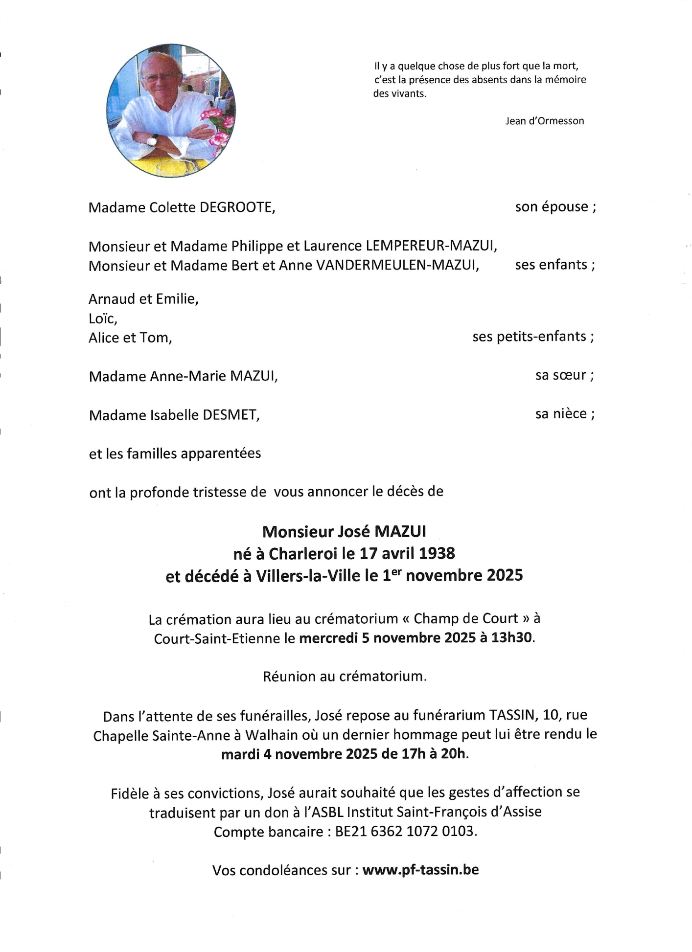 Fallecido en Villers-la-Ville (1495, Bélgica) el sábado, 1 de noviembre de 2025 a la edad de 87 años