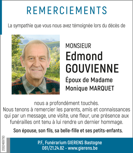 Geboren te Champlon (6900, België) op maandag 8 januari 1945