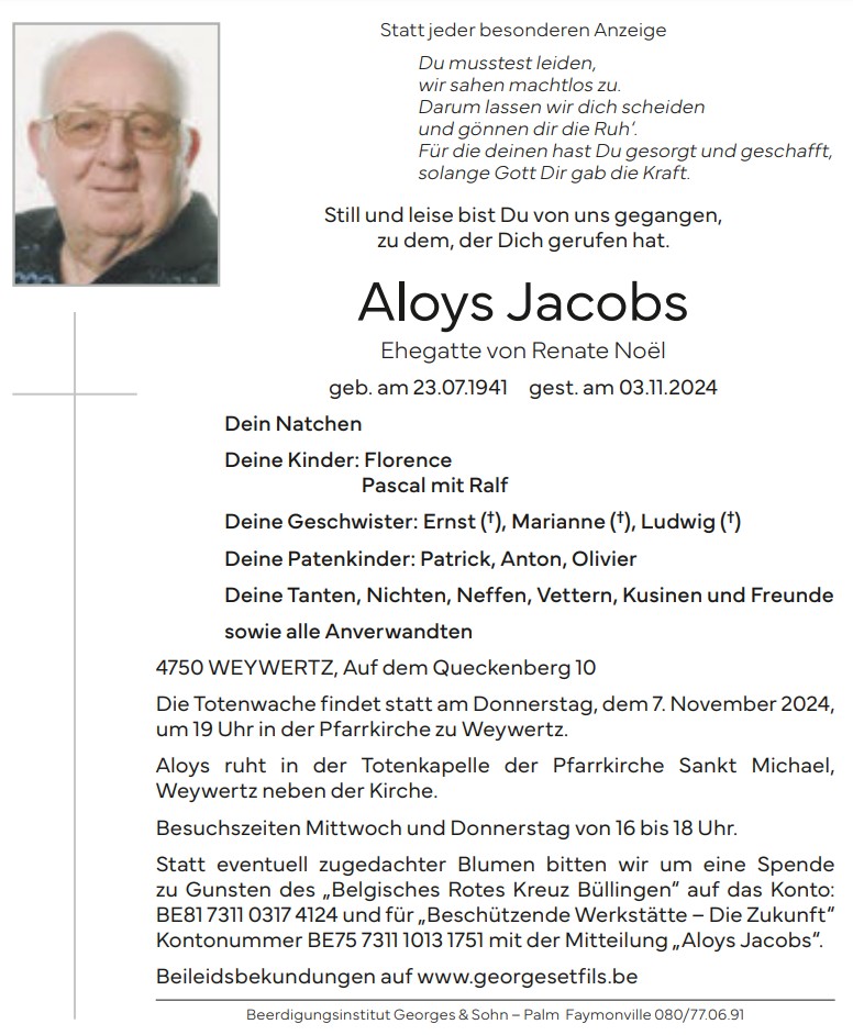 Décédé à Verviers (4800, Belgique) le dimanche 3 novembre 2024 à l'âge de 83 ans
