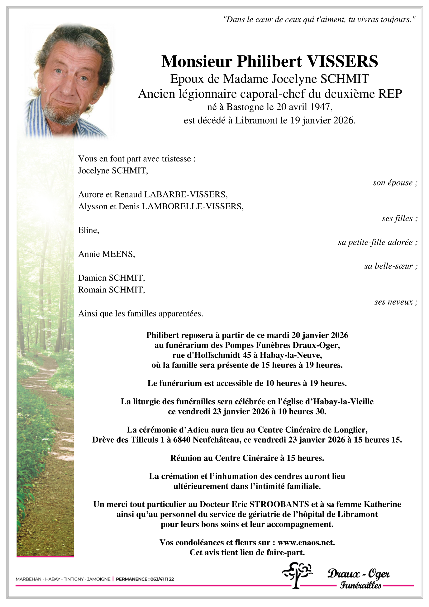 Died in Libramont-Chevigny (6800, Belgium) on 19 January 2026 at the age of 78 years