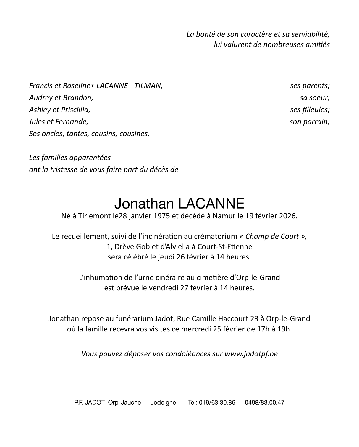 Décédé à Namur (5000, Belgique) le jeudi 19 février 2026 à l'âge de 51 ans