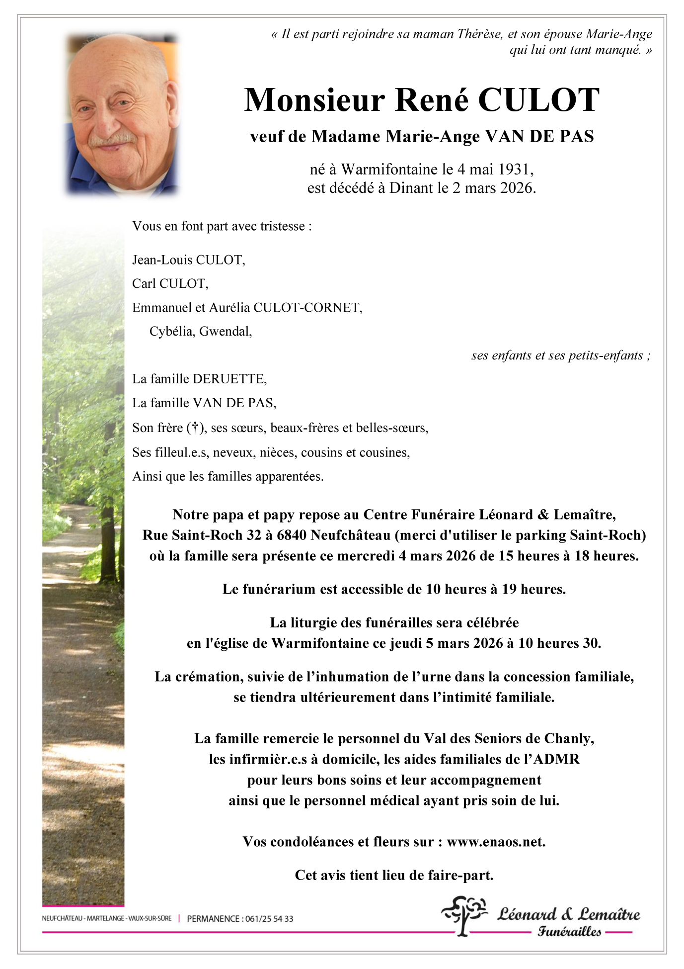 Veuf de Madame Marie-Ange VAN DE PAS