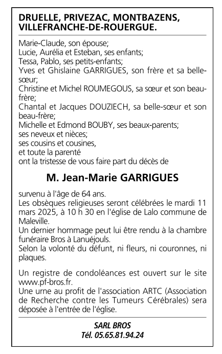 Fallecido en Saint-Jean-Delnous (12170, Francia) el sábado, 8 de marzo de 2025 a la edad de 64 años