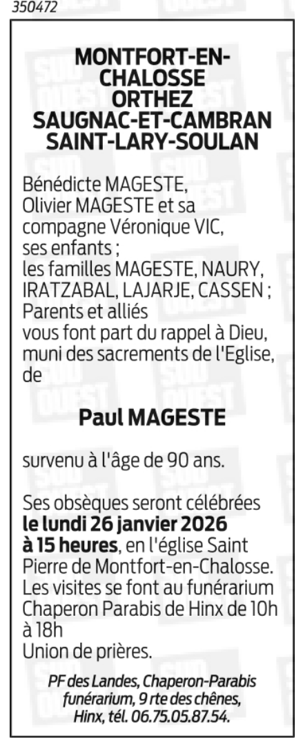 Fallecido en Mont-de-Marsan (40000, Francia) el martes, 20 de enero de 2026 a la edad de 90 años