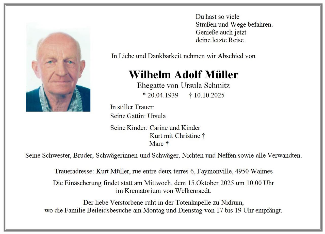 Décédé à Sourbrodt (4950, Belgique) le vendredi 10 octobre 2025 à l'âge de 86 ans