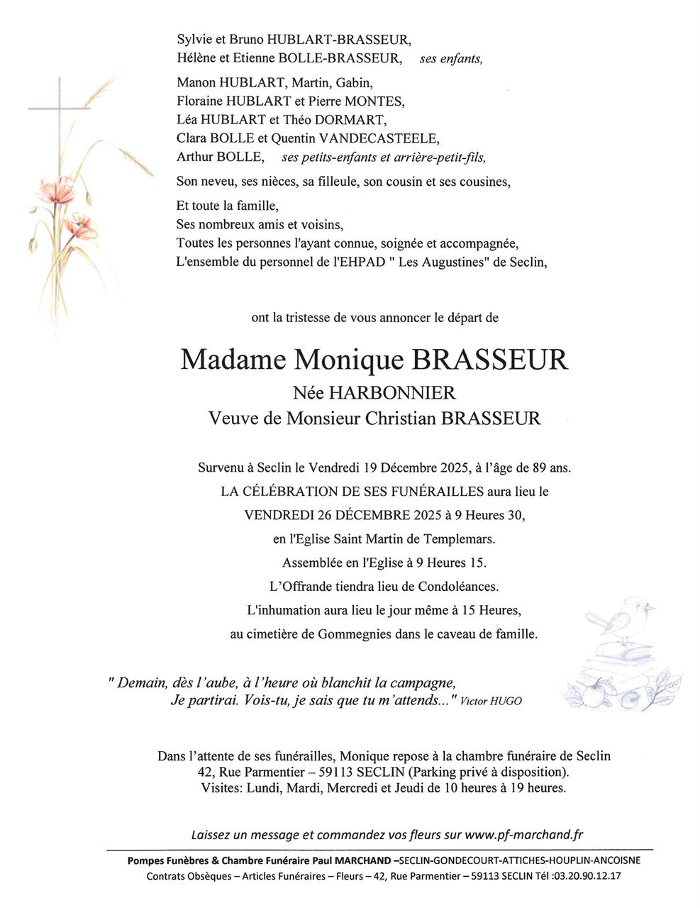 Décédée à Seclin (59113, France) le vendredi 19 décembre 2025 à l'âge de 89 ans