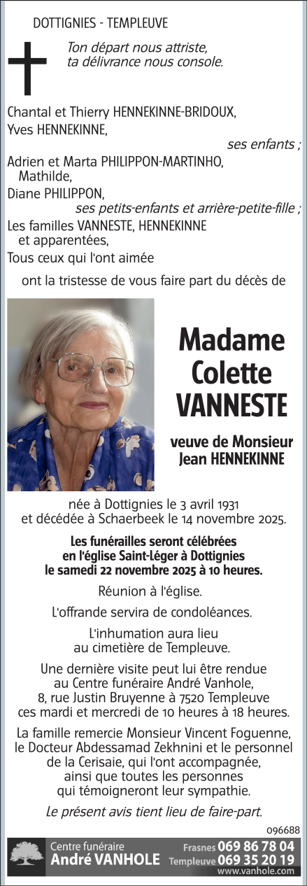 Née à Dottignies (7711, Belgique) le vendredi 3 avril 1931