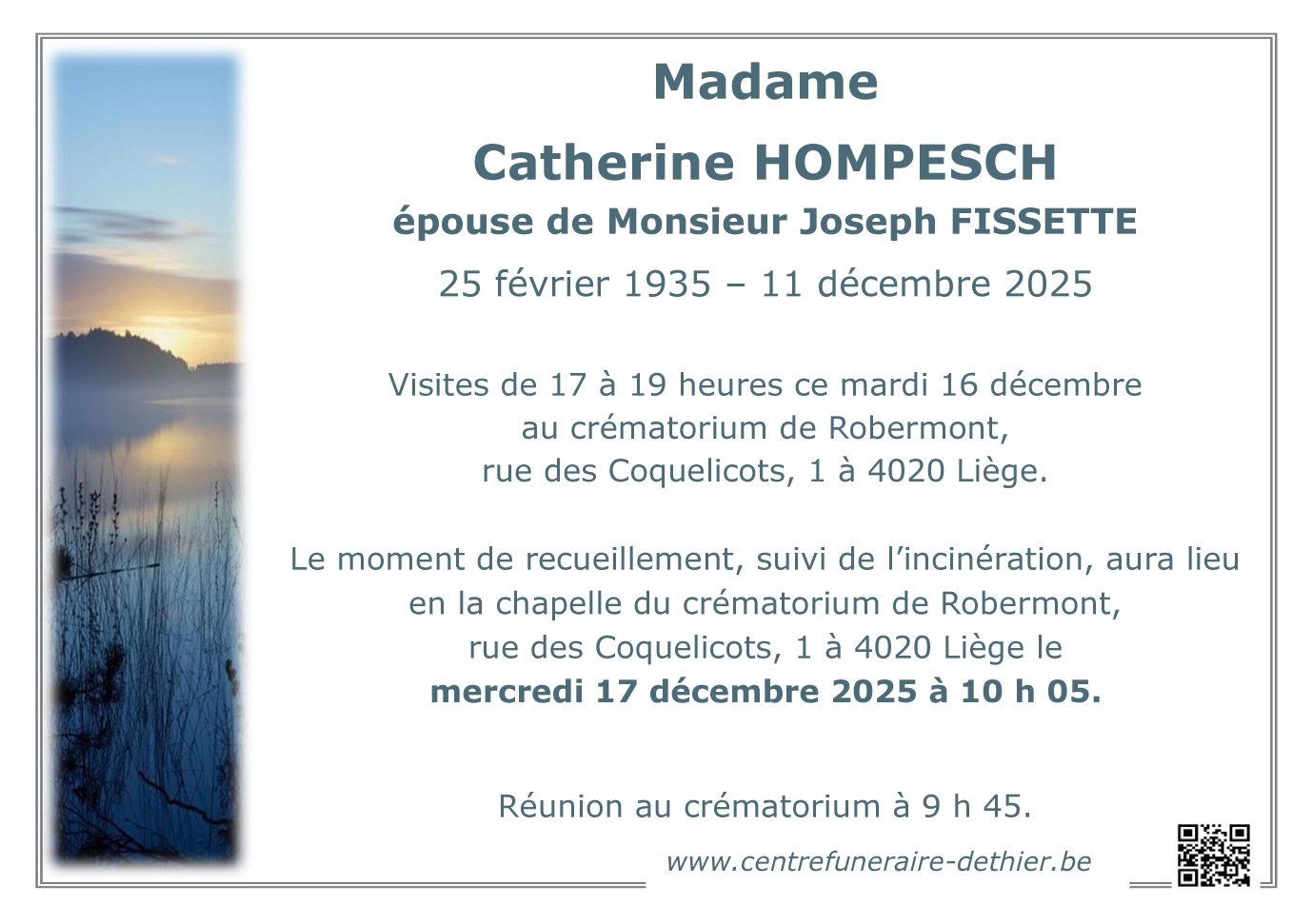 Fallecida en Chênée (4032, Bélgica) el jueves, 11 de diciembre de 2025 a la edad de 90 años