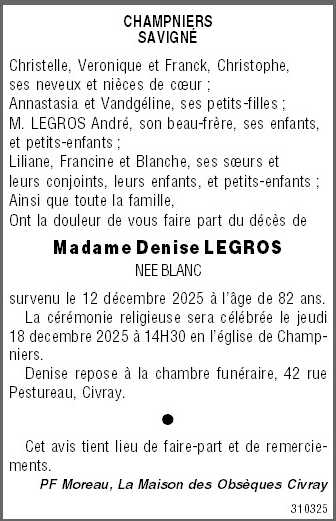 Fallecida en Châtellerault (86100, Francia) el viernes, 12 de diciembre de 2025 a la edad de 82 años