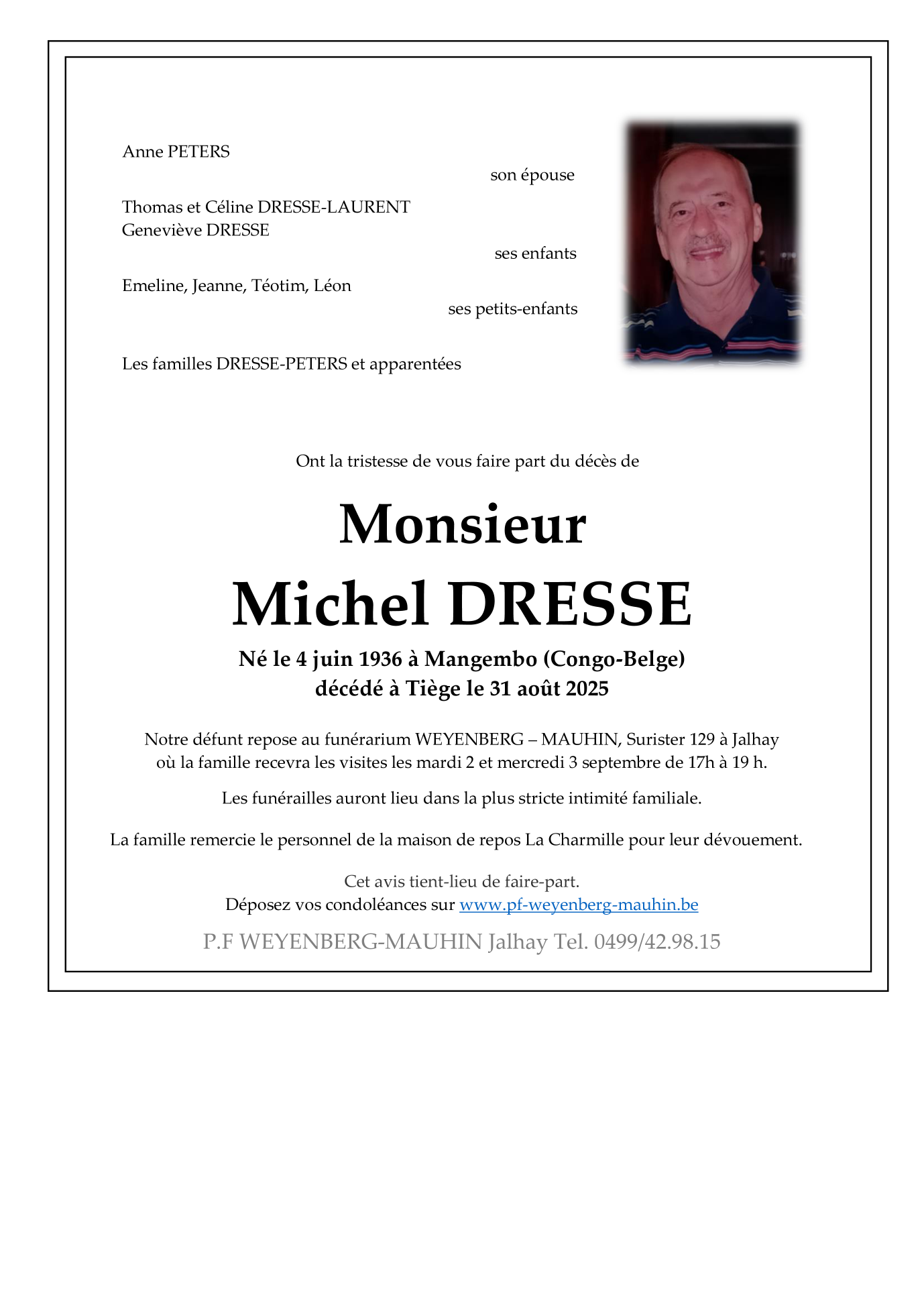 Died in Tiège (4845, Belgium) on 31 August 2025 at the age of 89 years
