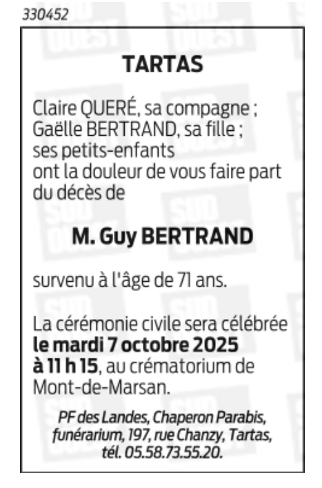 Fallecido en Mont-de-Marsan (40000, Francia) el jueves, 2 de octubre de 2025 a la edad de 71 años