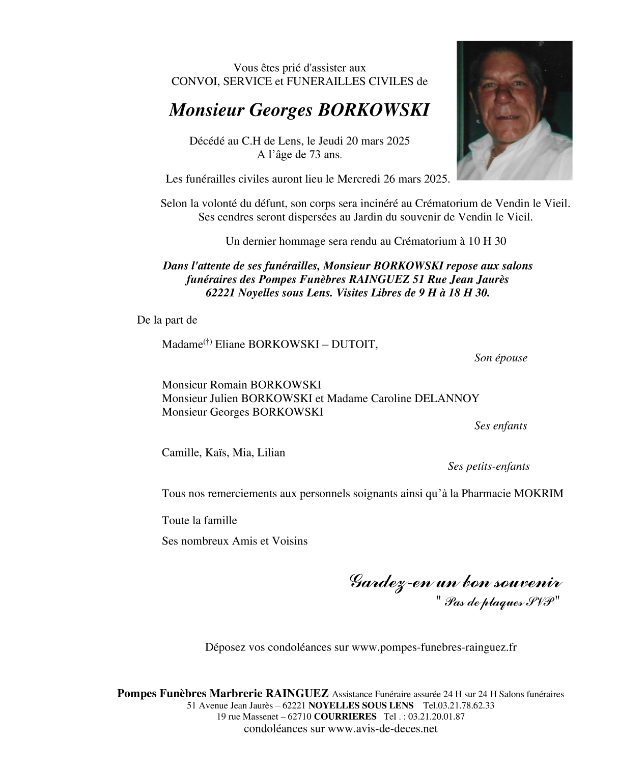 Died in Lens (62300, France) on 20 March 2025 at the age of 73 years