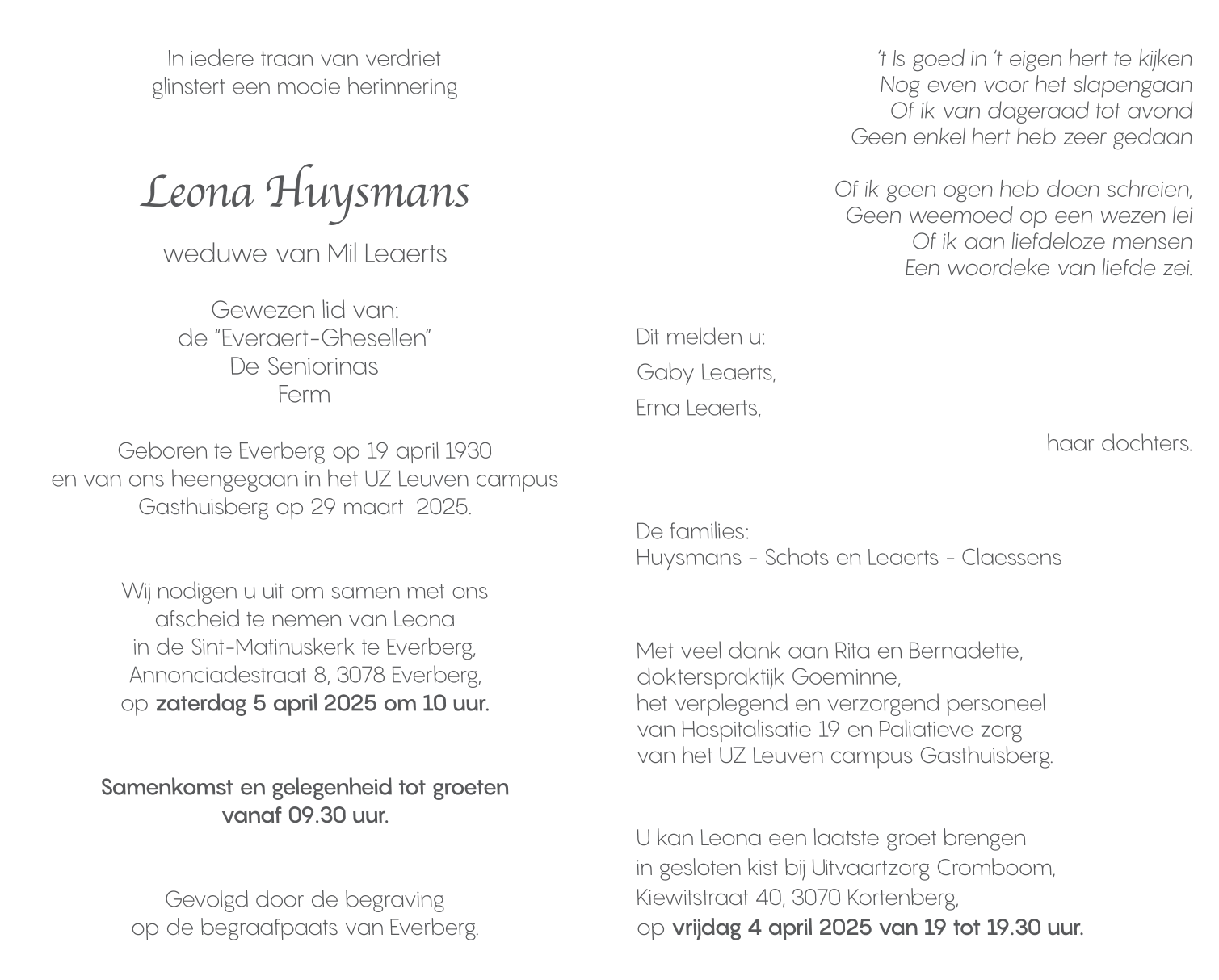 Fallecida en Leuven (3000, Bélgica) el sábado, 29 de marzo de 2025 a la edad de 94 años