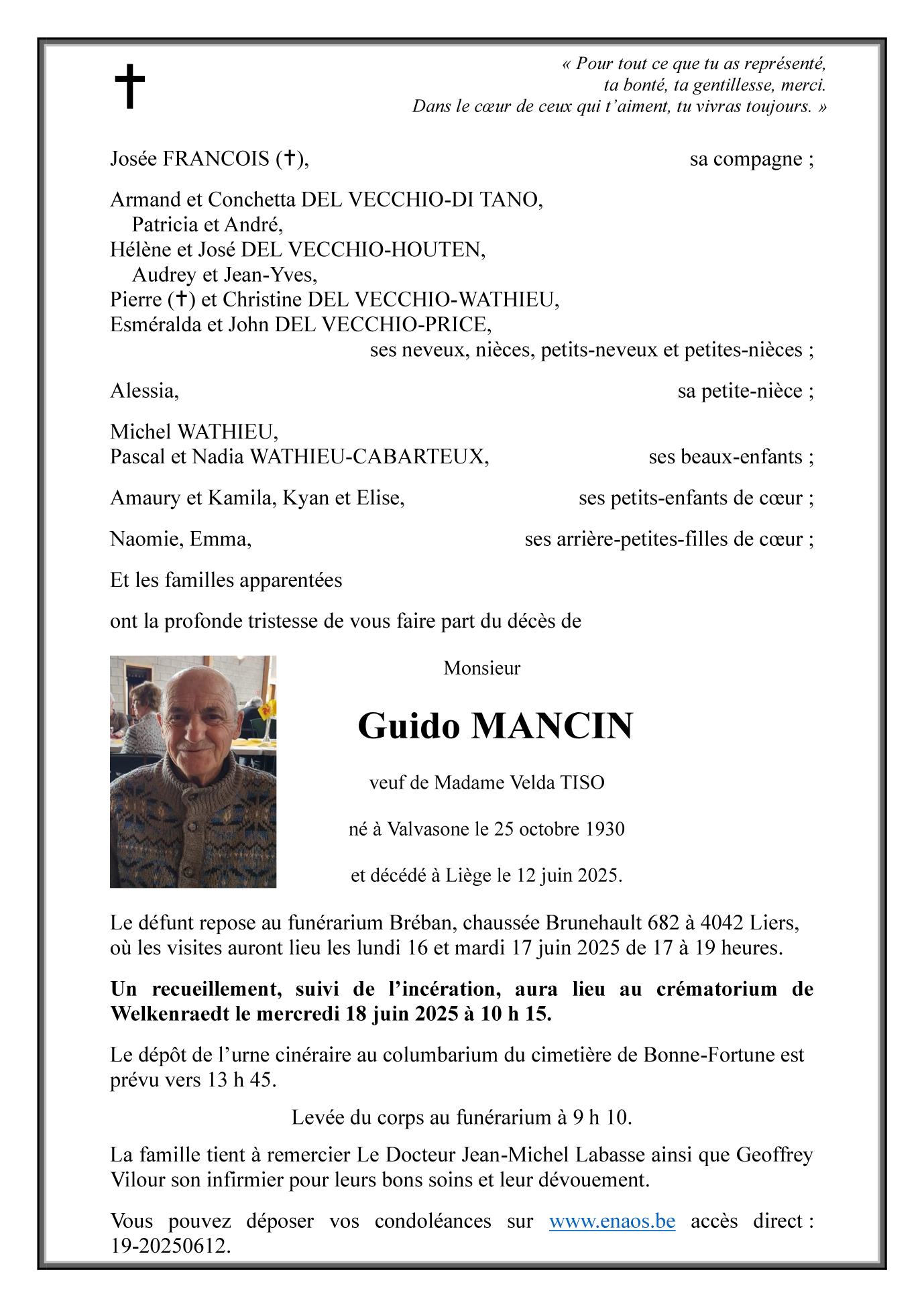 Died in Liège (4000, Belgium) on 12 June 2025 at the age of 94 years