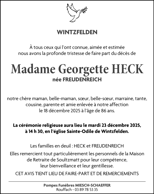 Overleden te Soultzmatt (68570, Frankrijk) op donderdag 18 december 2025 op 86-jarige leeftijd
