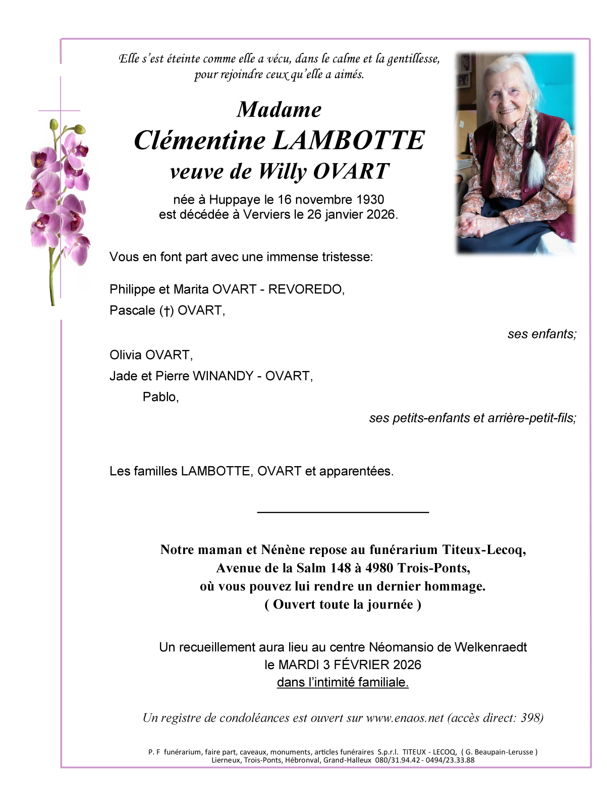 Madame Clémentine LAMBOTTE