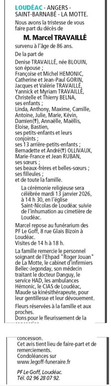 Décédé à La Motte (22600, France) le samedi 10 janvier 2026 à l'âge de 86 ans